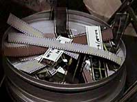 そして編集があがると棚にまるめて置いておき、最後に一本にして大きなスクリーンで見る。 |